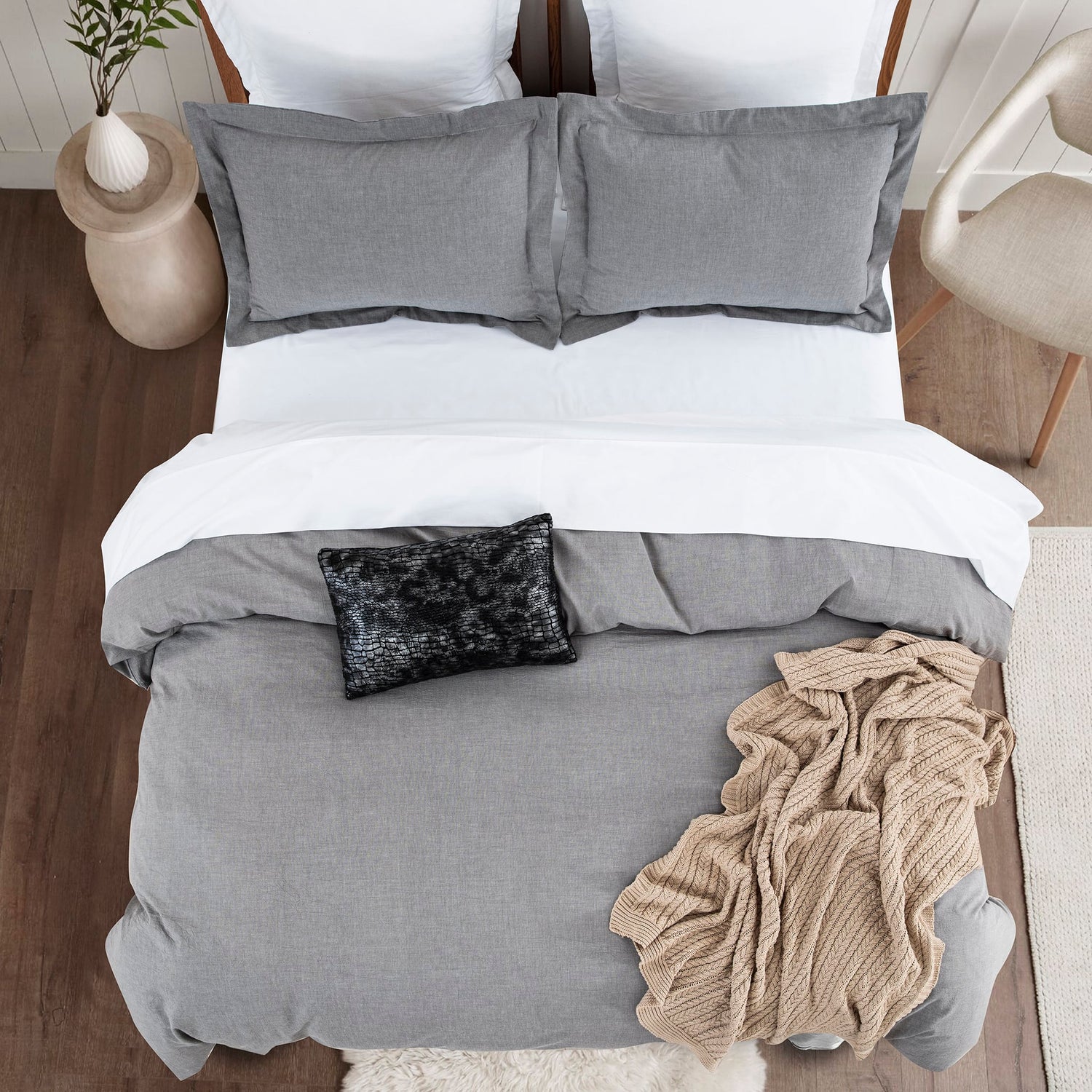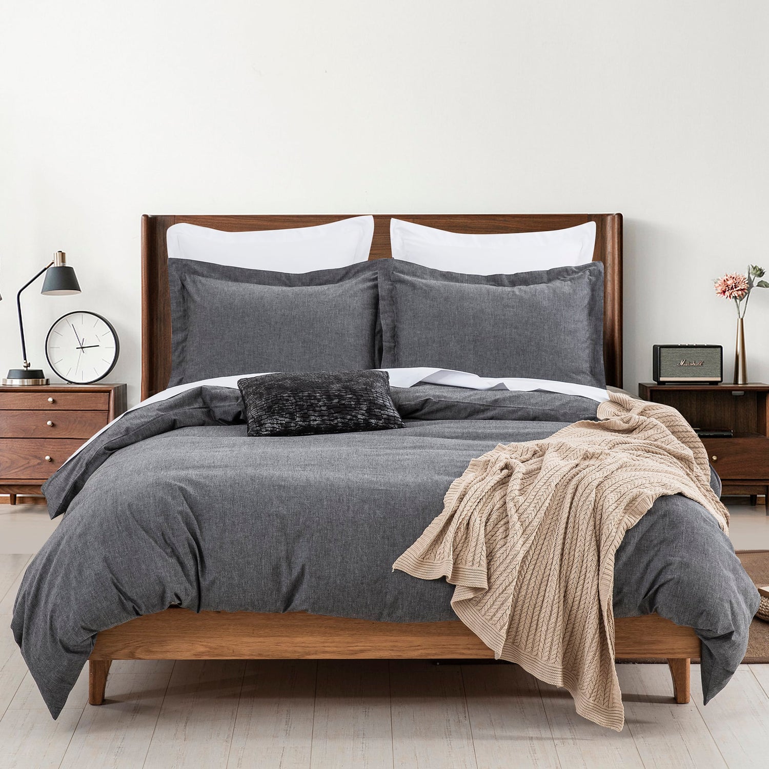 Gray Checkered Soft Cotton Duvet Cover & Sham
