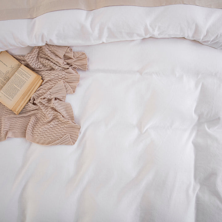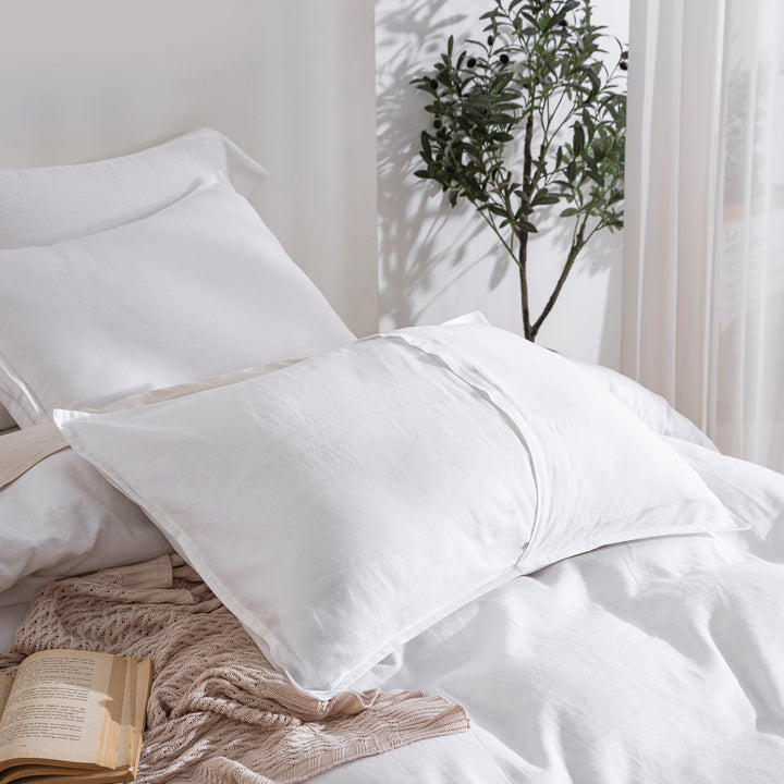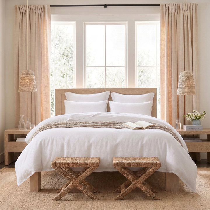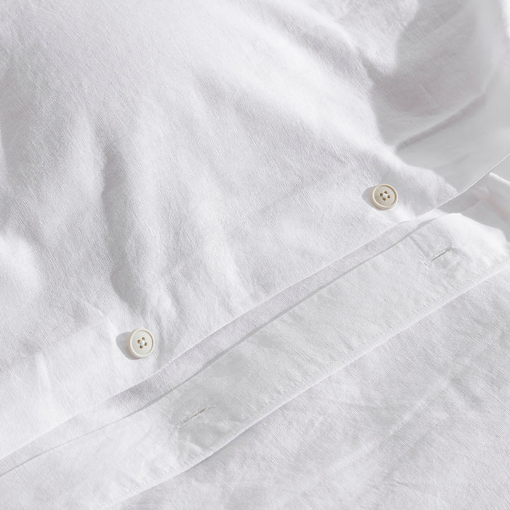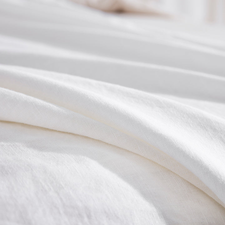 Embrace an effortlessly chic, organic aesthetic with our Classic White Linen Cotton Blend Duvet Cover Set. Featuring a naturally beautifully textured, solid white design, this bedding essential embodies the popular "organic modern" look. Prewashed for that coveted lived-in feel from day one, it brings a serene, understated, and sophisticated warmth to any bedroom setting.