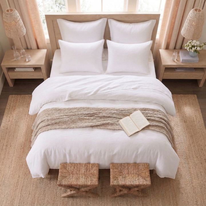 The Perfect Blend: Expertly crafted from a luxurious blend of 55% European flax linen and 45% pure cotton. This combination offers the best of both worlds: the breathable, rustic texture of linen and the smooth, cozy softness of cotton.