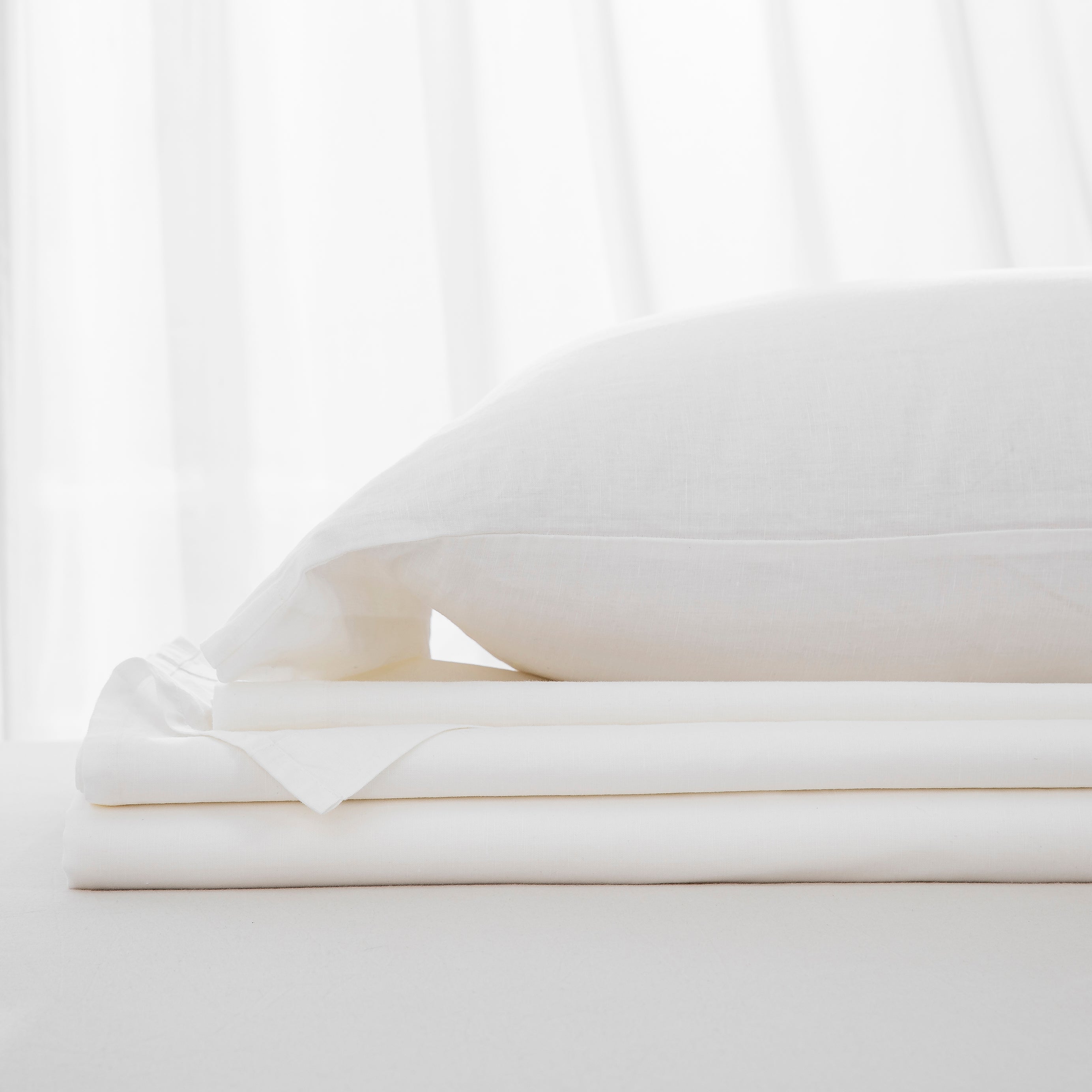 Instantly refresh your bedroom with the pristine elegance of our Crisp White Linen Cotton Blend Sheet Set. Featuring a brilliant, clean white hue and a naturally beautifully textured finish, this bedding essential brings a breath of fresh air and quiet luxury to any space. Prewashed for that incredibly soft, coveted lived-in feel from day one, it offers the perfect, versatile foundation for a bright, restorative night's sleep.