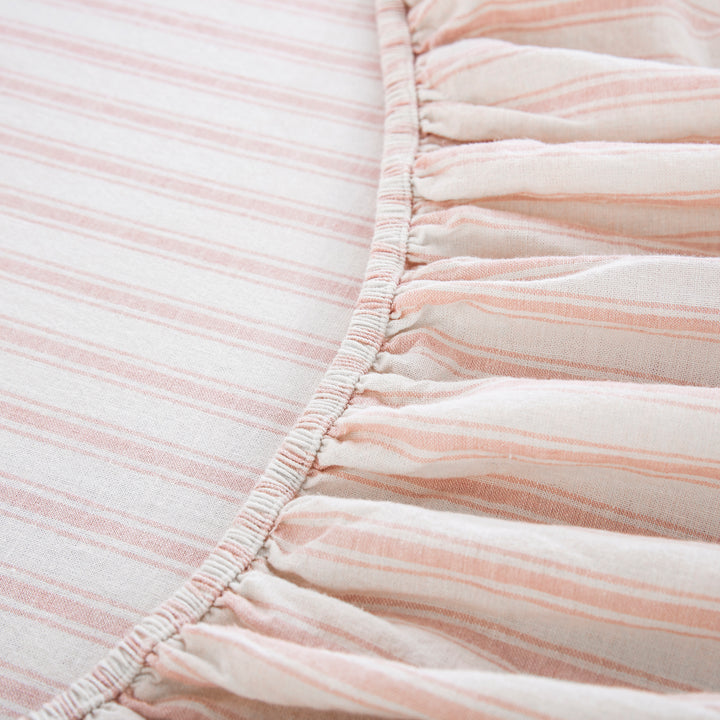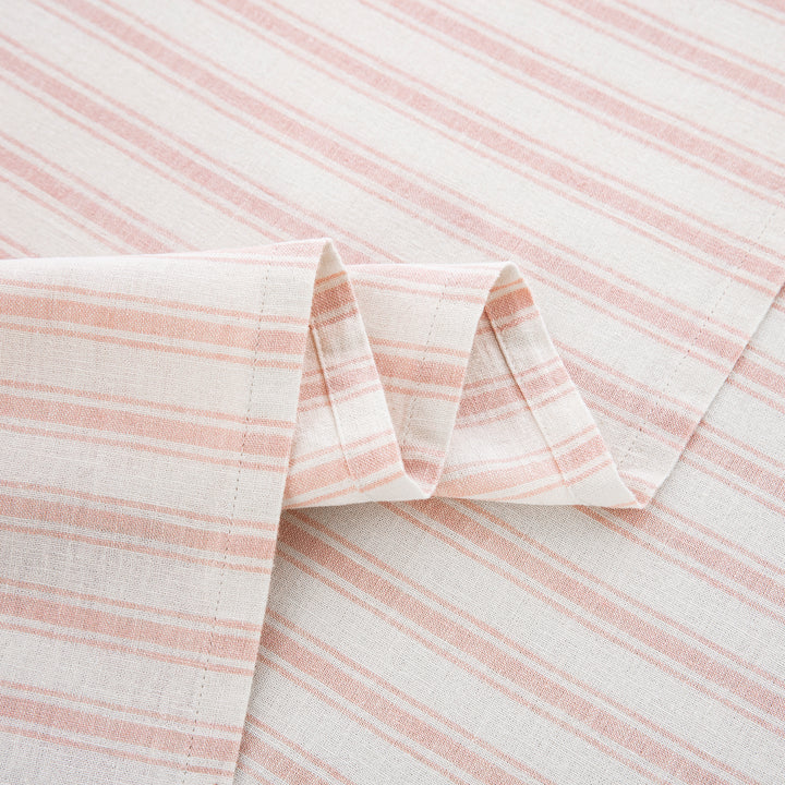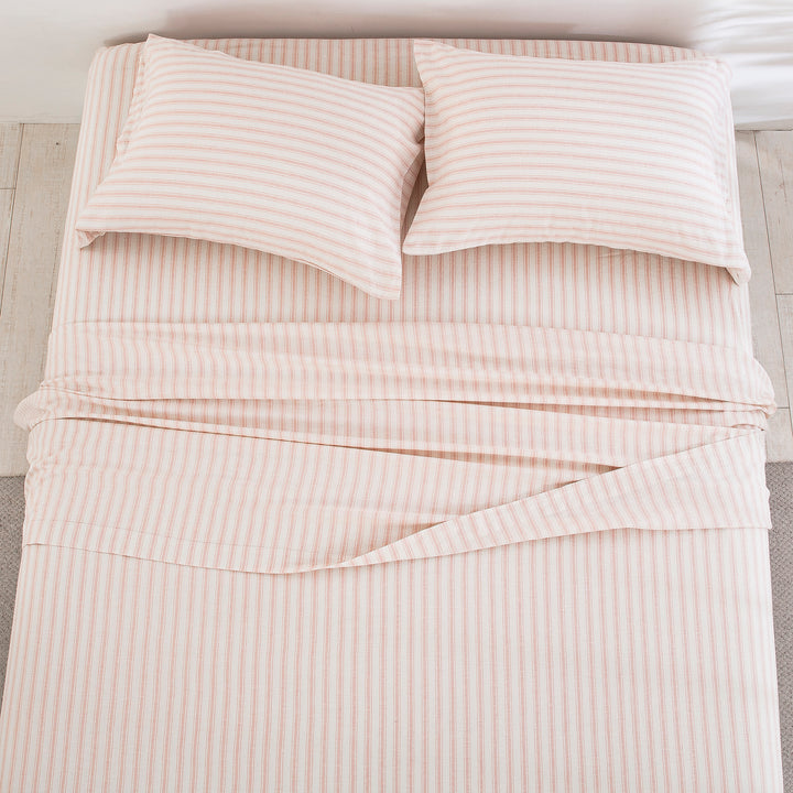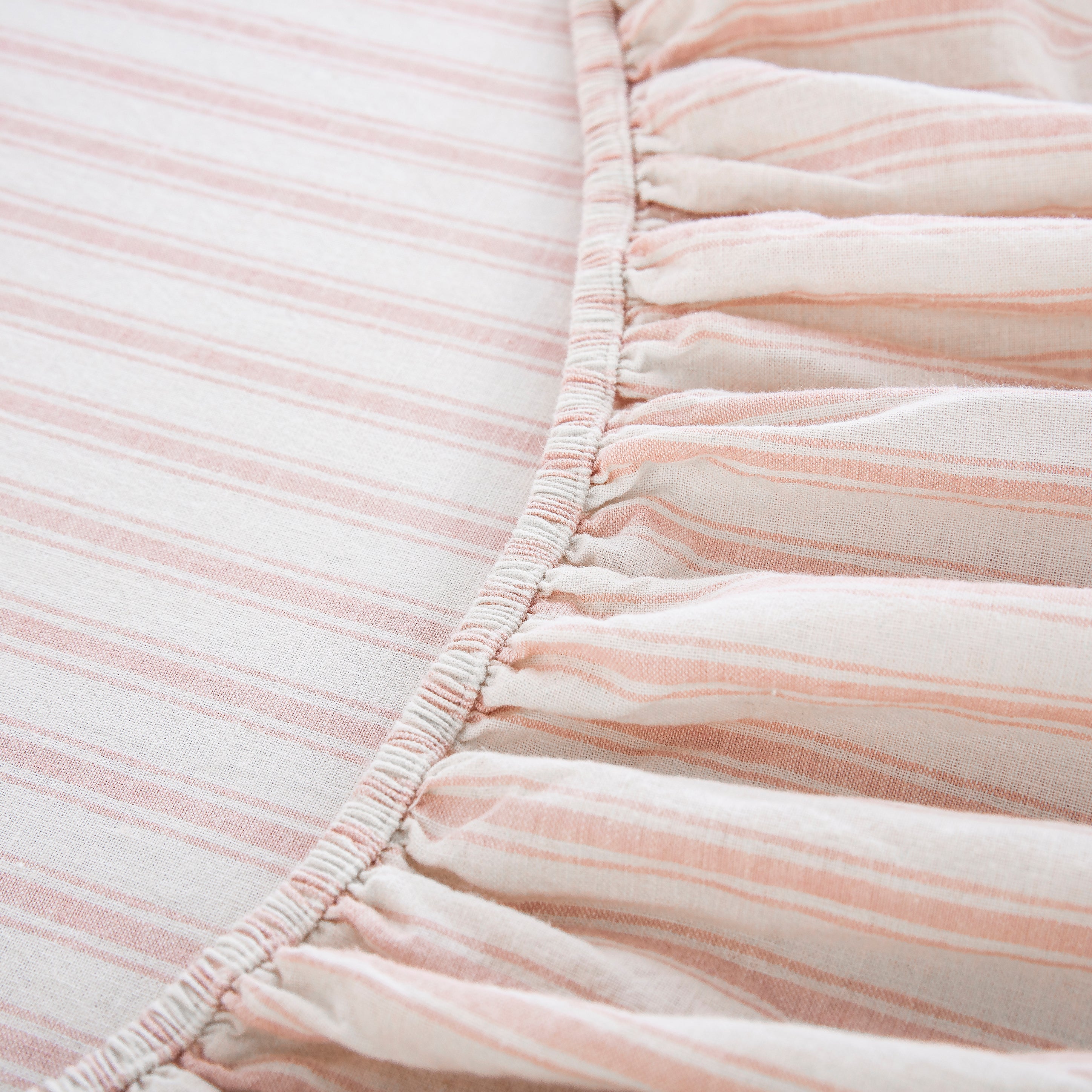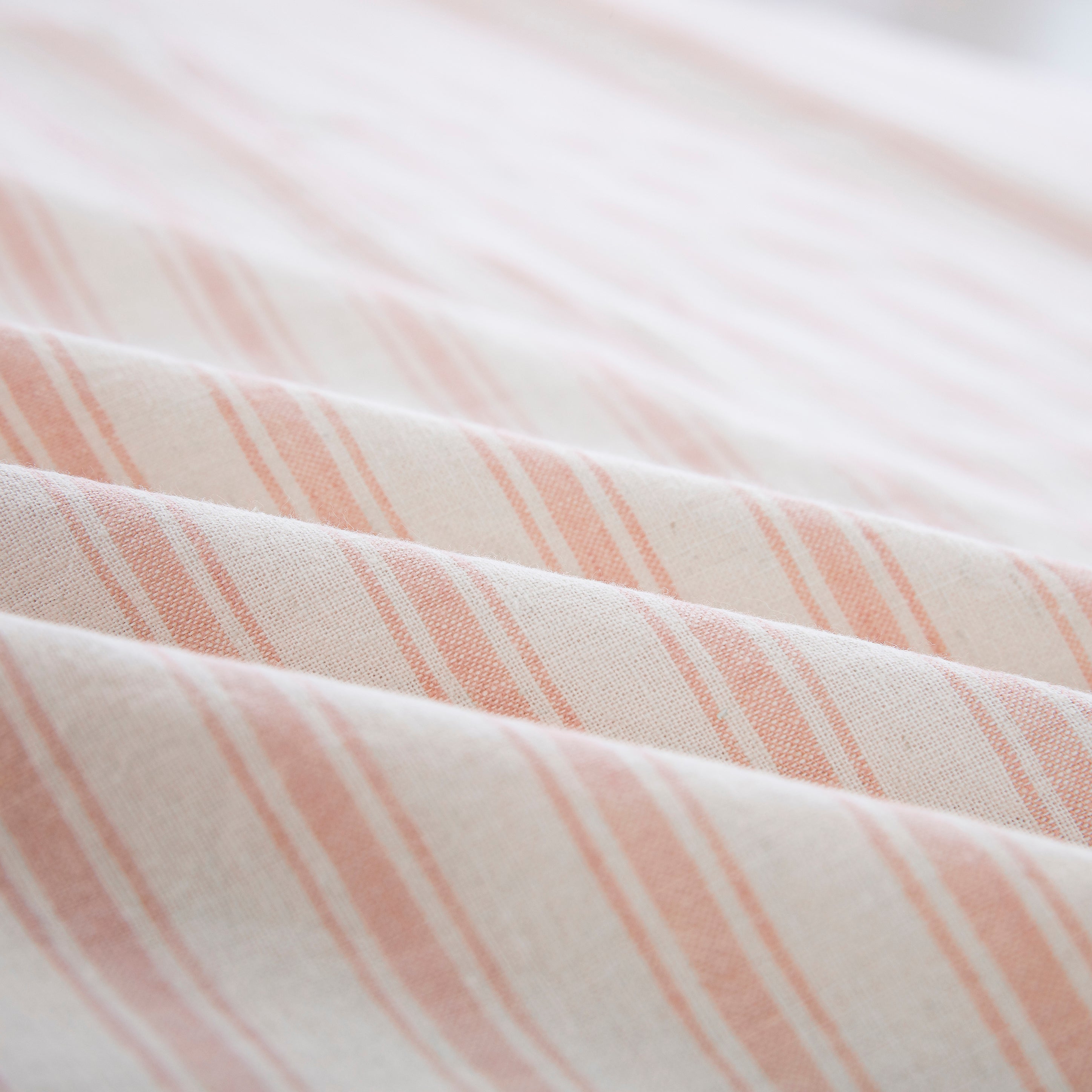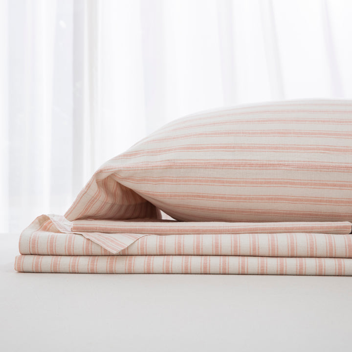 Bring a breath of fresh, airy elegance to your sleep sanctuary with our Yarn-Dyed Stripe Linen Cotton Blend Sheet Set in a soothing blush pink. Featuring a classic, finely tailored stripe pattern, this bedding essential perfectly balances romantic warmth with a minimalist, relaxed aesthetic. Because the pattern is woven from yarn-dyed fibers rather than printed on the surface, it offers a richer color depth and a wonderfully tactile, lived-in texture right from the very first night.